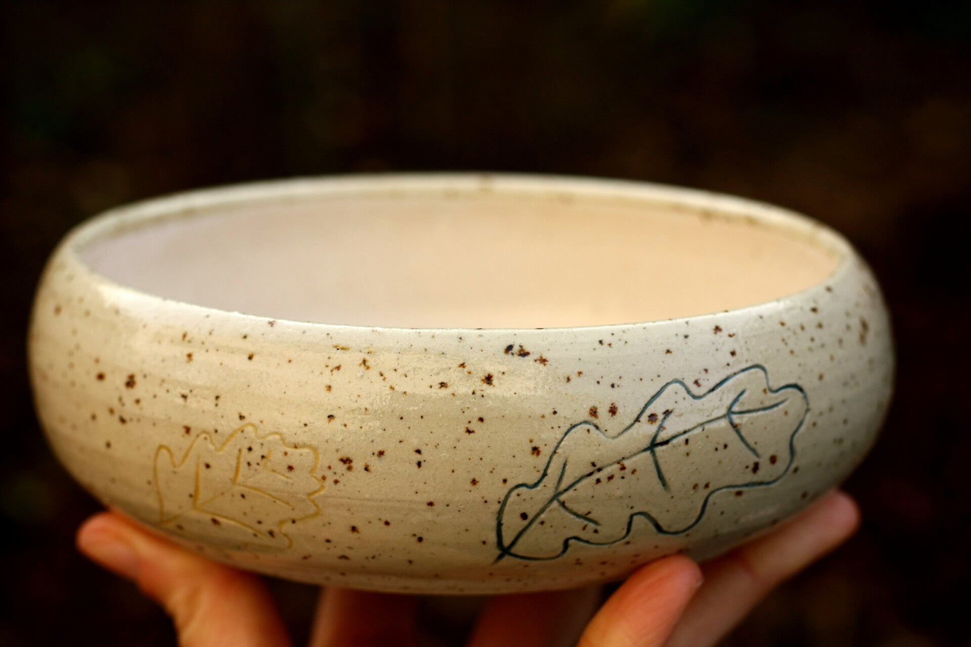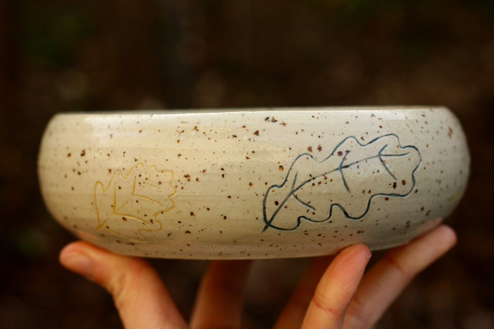 Une assiette en grès décorée de motifs feuilles et glands, gravés puis colorés à la main. Chaque détail raconte le geste, la patience et l’inspiration du moment. Une pièce unique, à la fois utilitaire et décorative. Cette pièce est née grâce à 3 contraintes tirées au sort.